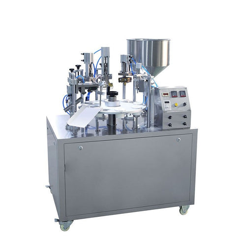 Composite tube filling and sealing machine is fully stainless steel, work process using control buttons; artificial tube, 8-station automatic rotary, quantitative filling, automatic cut, ultrasonic sealing, cutting the end, finished exit.